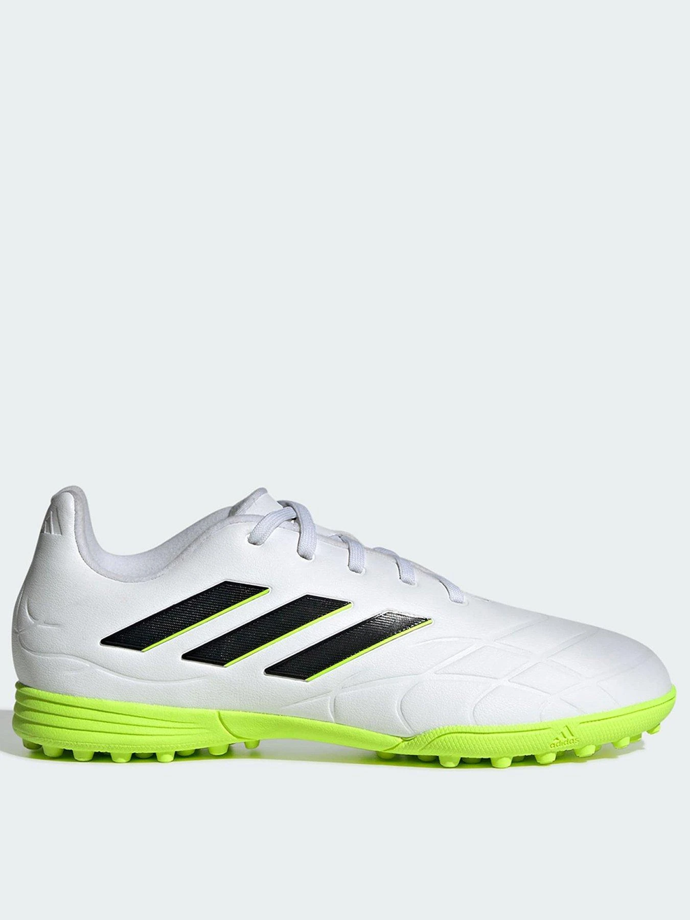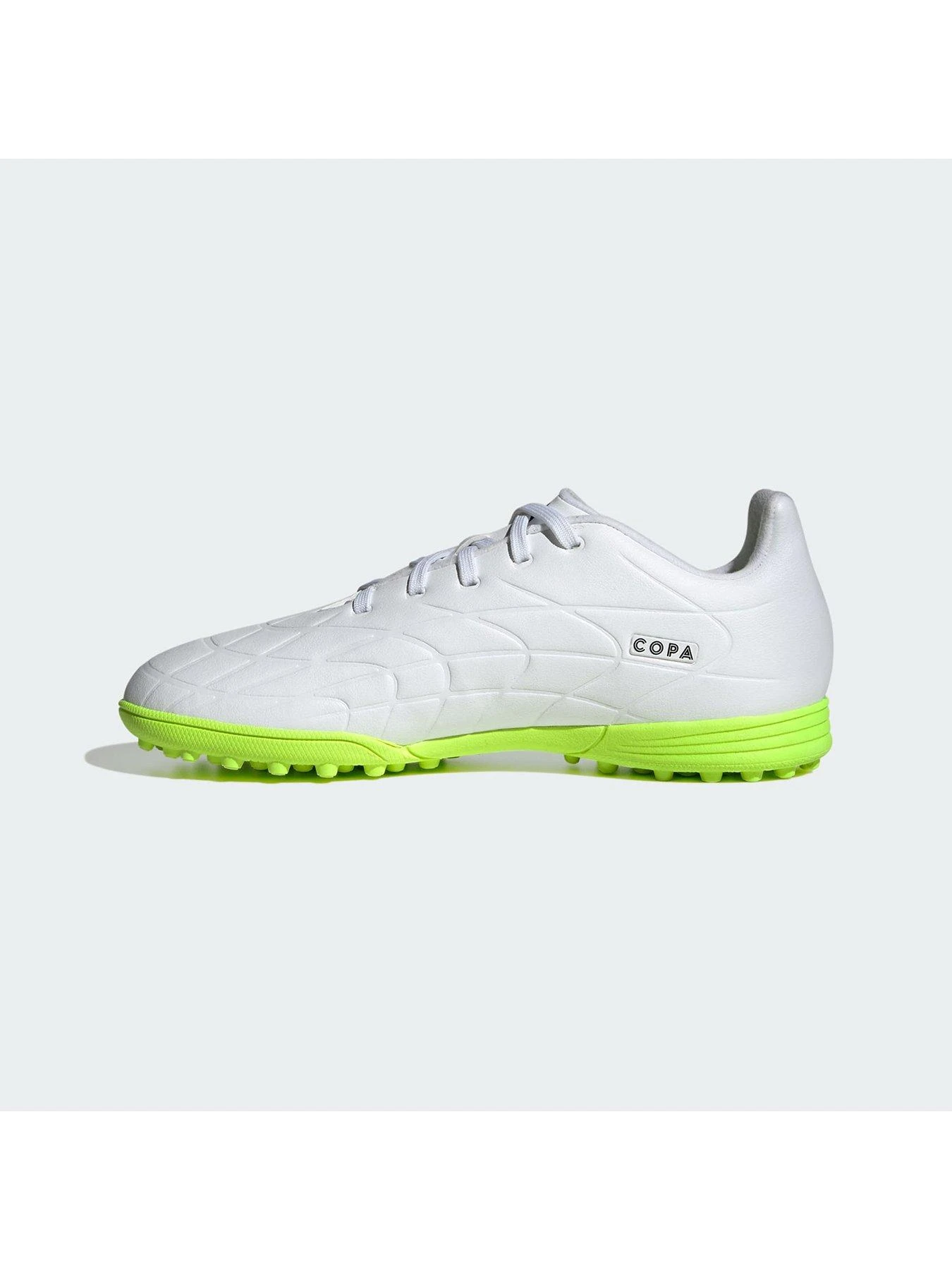 Boot connects with ball and the rest is history. Classic and comfortable. When you pull on adidas Copa Pure, everything just clicks. Roll back the years in juniors’ football boots designed to look and feel iconic. Their soft, synthetic leather forefoot and specialist outsole work together to give you silky-smooth touches on artificial turf pitches. Borrowing from Copa’s rich heritage, a contrast heel blinker takes centre stage amongst an array of subtle details.