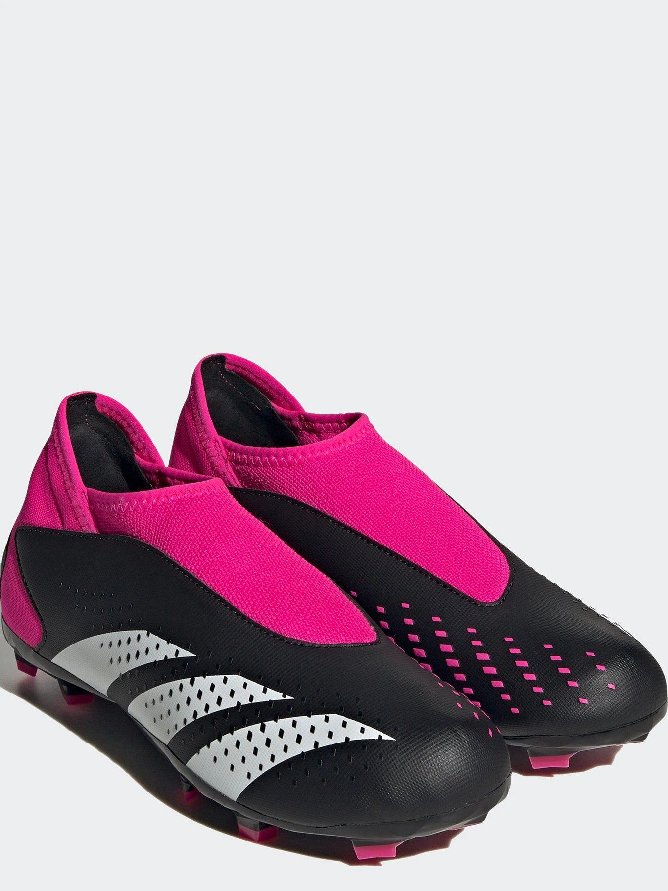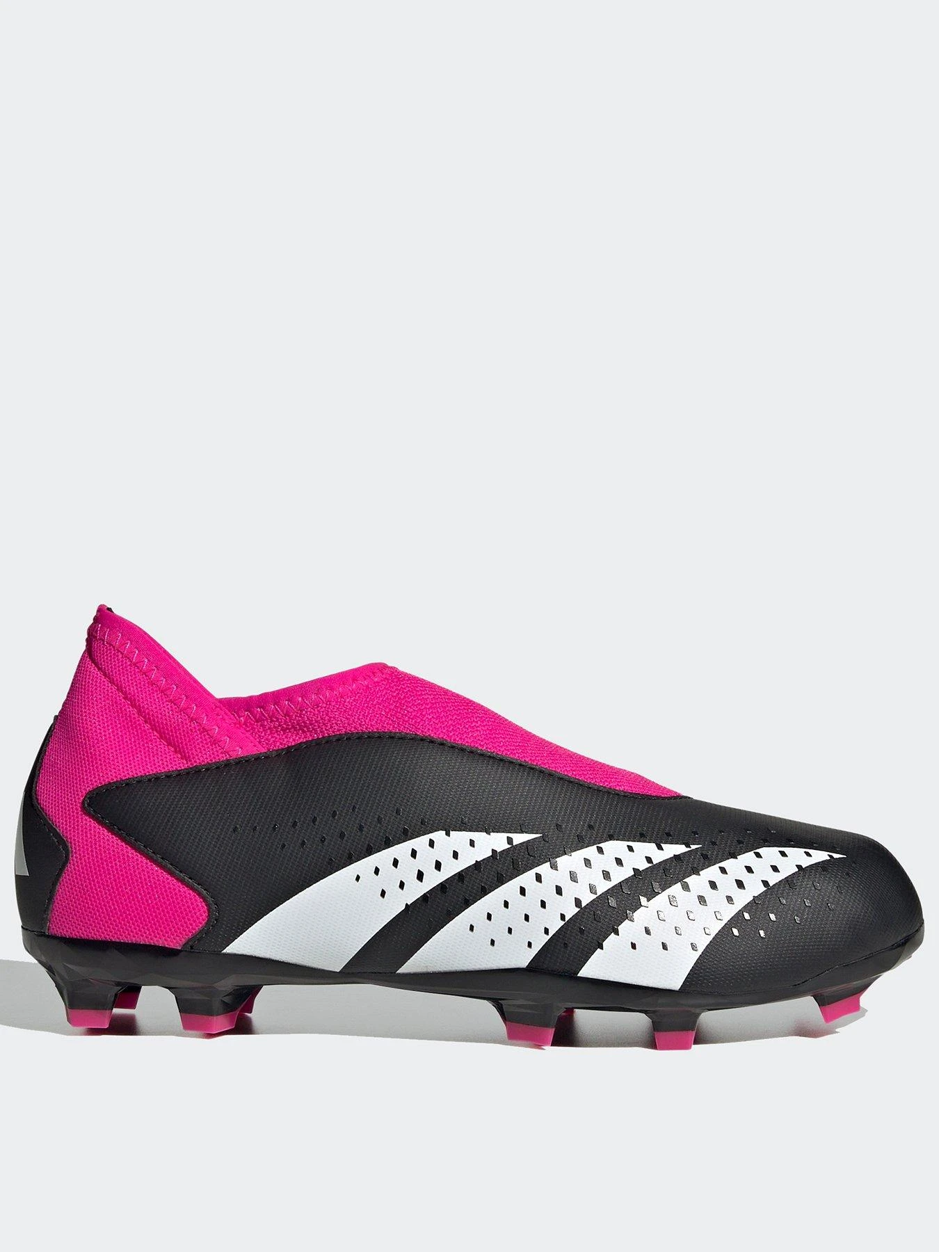 Control + accuracy = confidence. When the goal’s in your sights, target perfection with adidas Predator Accuracy. The laceless synthetic upper on these juniors’ football boots includes High Definition Texture across its strike zone. A mixture of debossed elements and raised print, it’s there to help you nail every pass and shot. Underneath, a specialist outsole keeps you in boss mode on firm ground.