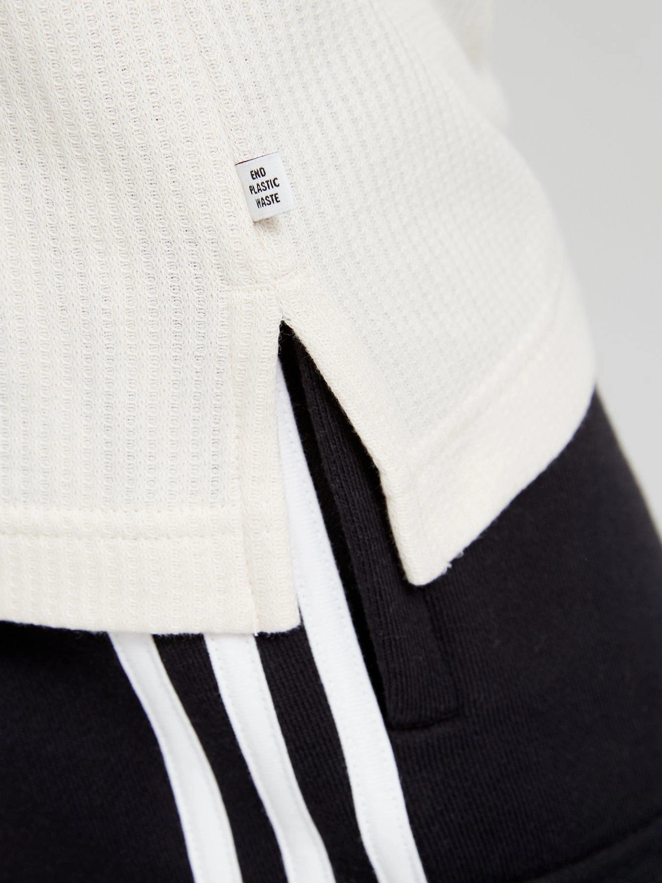 - Body: 70% cotton, 30% recycled polyester waffle