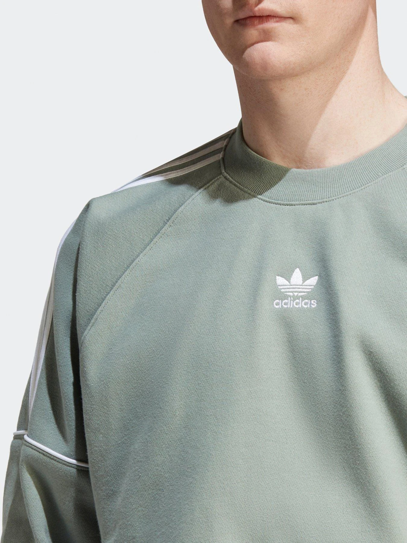 - All about minimalist style, this adidas Originals sweatshirt brings sporty signature to your down time look with Trefoil and 3-Stripe branding. It’s made with plush cotton fabric for soft comfort you’ll always want to chuck on.