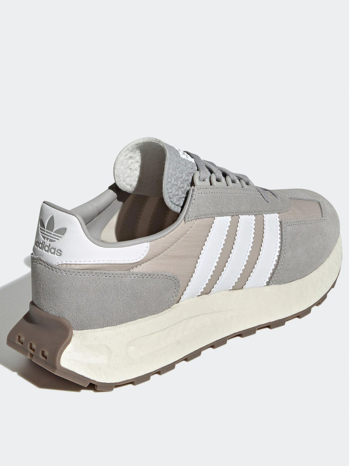 - Make your mark on casual days with the Retropy E5 that fuse retro inspirations with cool modern shapes. The layered upper mixes mesh, textile suede panels for a premium look and feel. A Boost midsole responds to your every step for a bouncy, cloud-like feel, while a rubber outsole gives great traction.