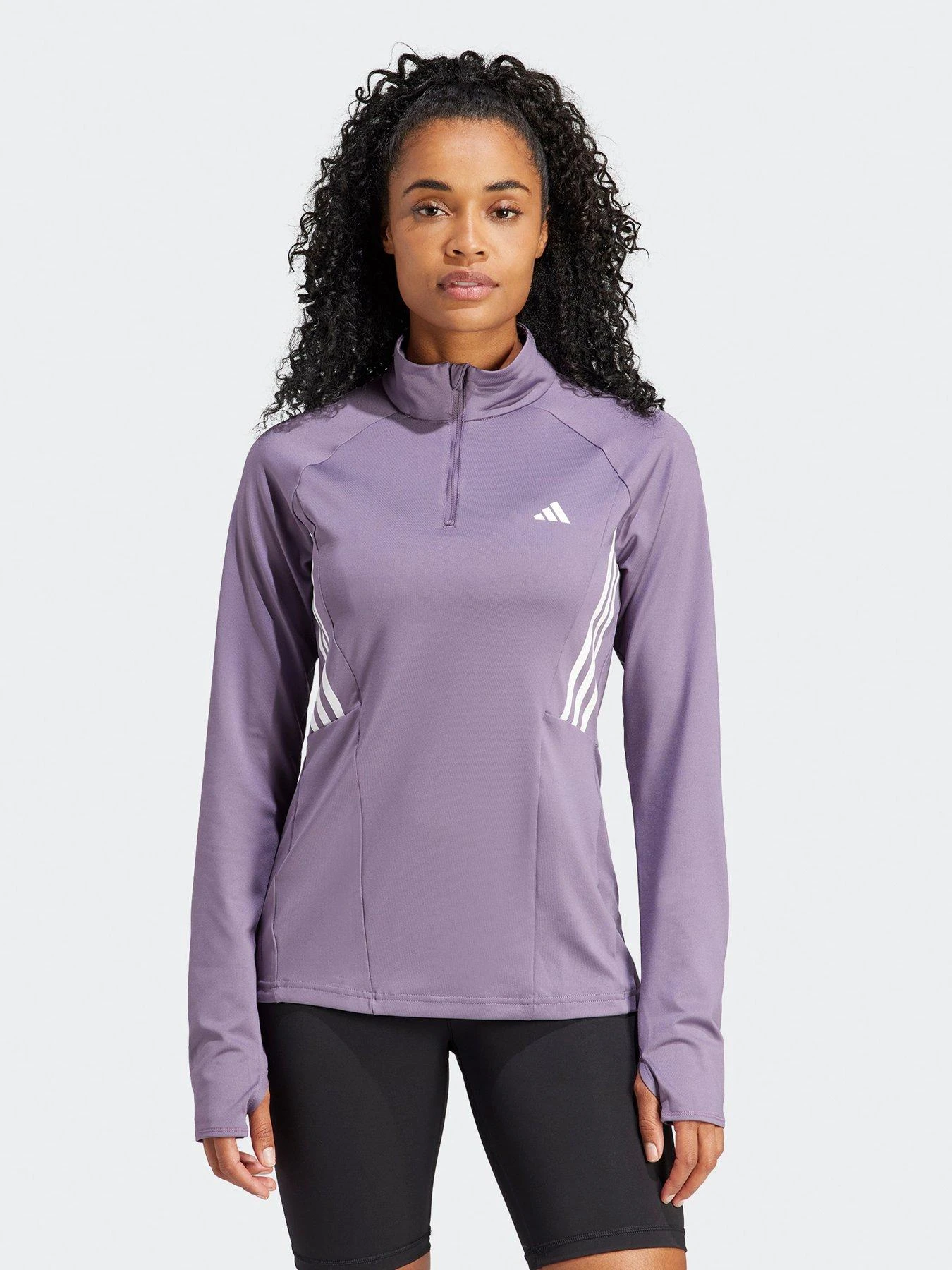 - This adidas Performance 1/4 Track Top is as cool as it is practical. Built-in thumbholes keep the stylish, stretchy top in place – whether you’re shooting hoops or doing yoga – while the slim fit hugs your body for a close to the-skin feel. The iconic 3-Stripes detailing down the sides and performance logo adds a classic twist to the wardrobe staple.
