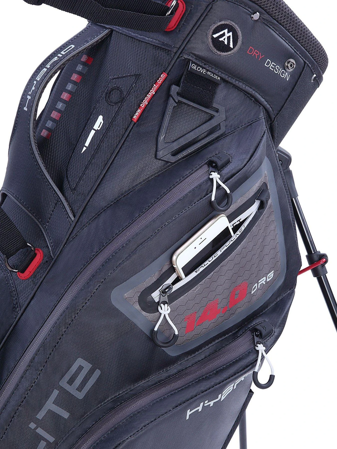 The new, water-repellent Dri Lite Hybrid 2 Standbag is the ultimate all-round solution for the golfer. Despite the full length 14-way divider, the bag is ultra-light and offers enough storage space. The new hybrid bottom allows stable use on the BIG MAX trolley. The bag can therefore be used as a cartbag and as a standbag. This is made possible by a reinforced trolley support and the Leg Lock mechanism for the legs. As a stand bag, the Hybrid 2 is also a real pleasure – thanks to its particularly light weight, the Air Channel Strap and the ergonomically well-placed compartments for valuables and drinks. BIG MAX Dri Lite bags are water resistant, with waterproof zips. They are suitable for all weather conditions and are particularly easy to clean and wash. The new pipeless design also improves water drainage for better protection.