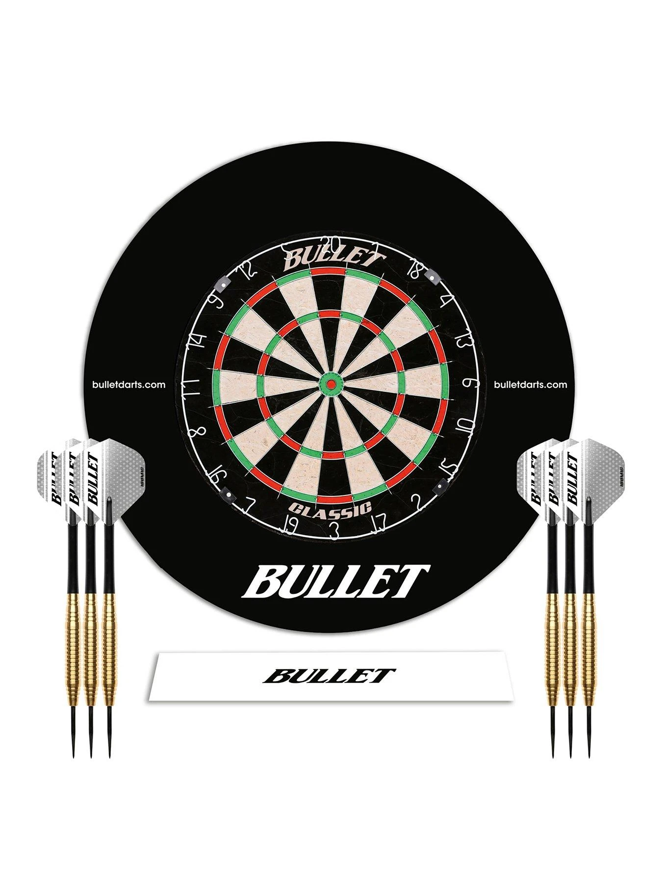 Included in the set is a Bullet Adhesive Throwing Line Sticker which you can use for placing on the floor or mat, ensuring that you are always the official distance from the dartboard. The dartboard surround ring is made of a specially developed EVA material for darts and is 3cm thick, therefore thicker than any dart tip offering the best protection for your wall. The Bullet Tournament Set is the perfect addition to the living or games room!