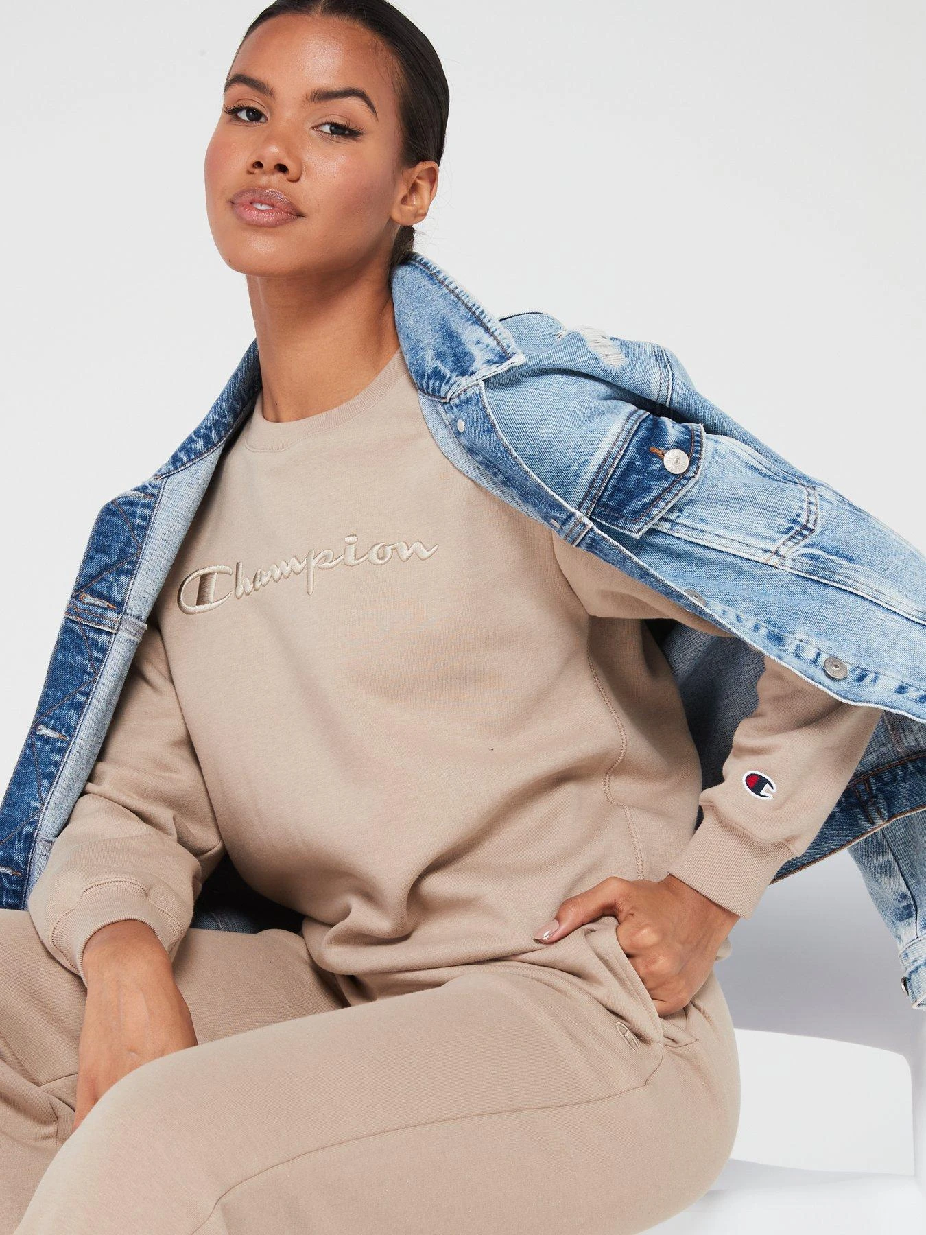 - Champion logo across the chest