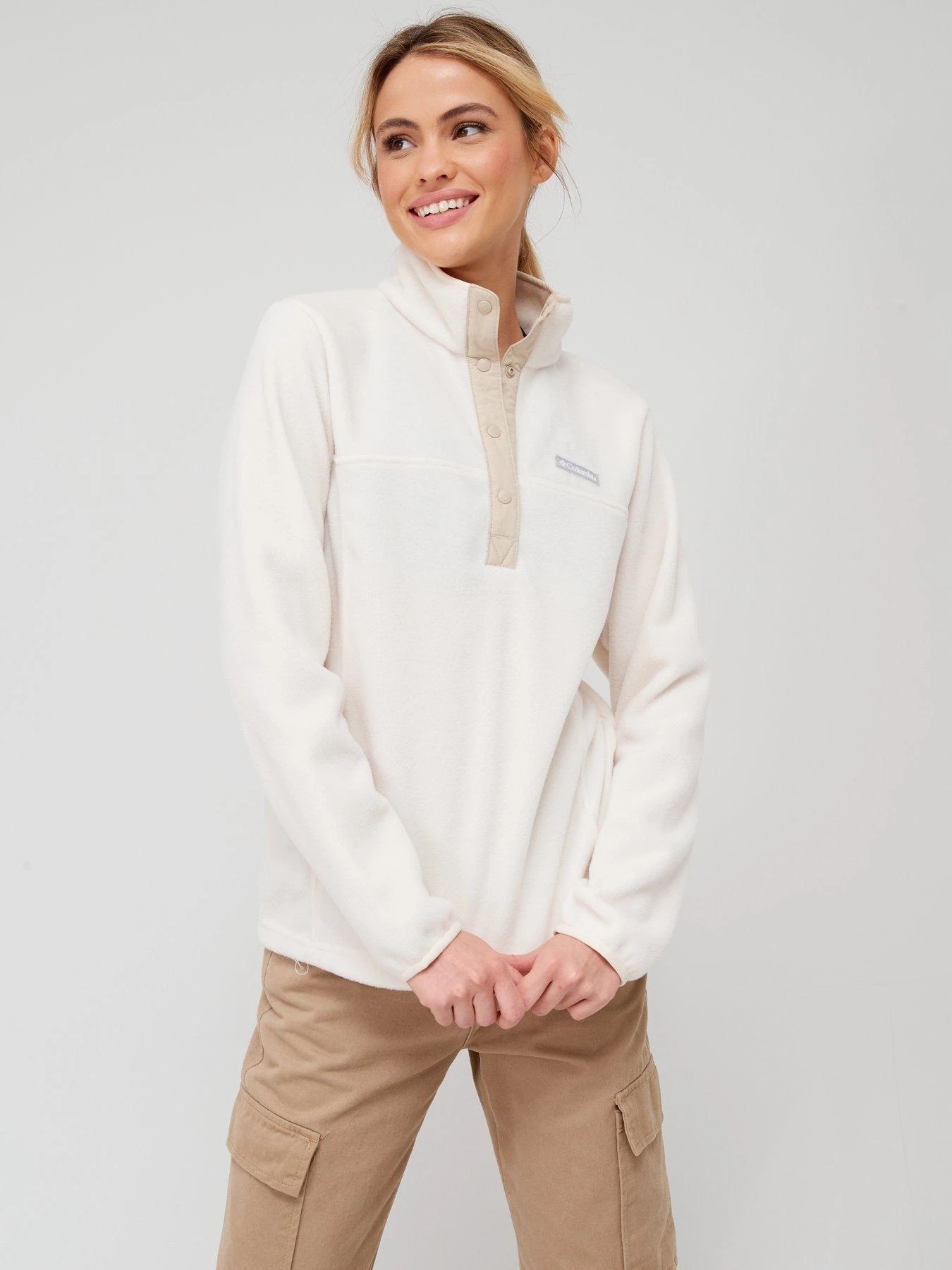 - Great for those days when there is a bit of a chill in the air, the Columbia Benton Springs 1/2 Snap Pullover Fleece is great for layering up over a tee or under a jacket. The fleece is super soft, lightweight and provides reliable warmth.