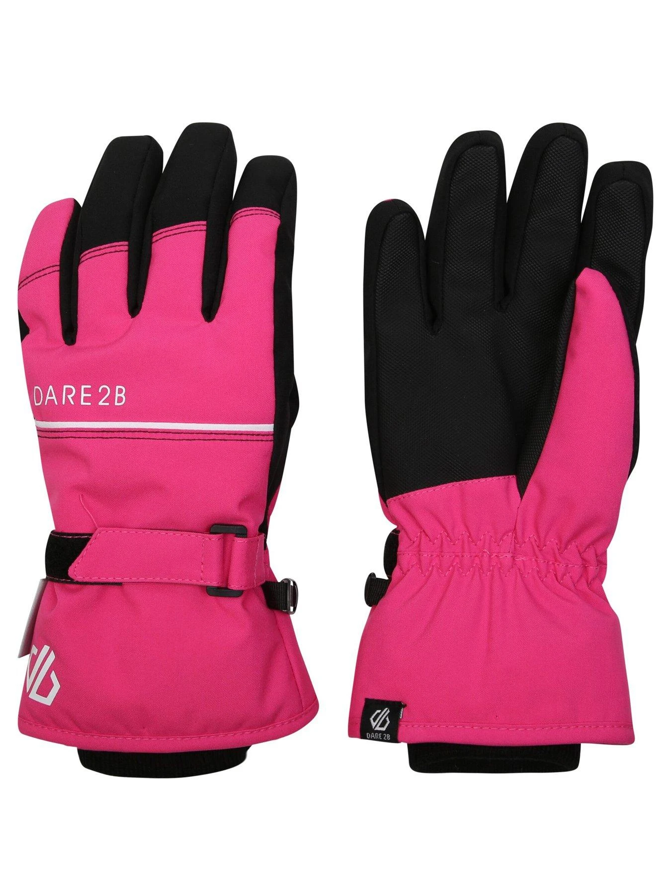 The Dare 2b Restart Glove. Made of super stretchy fabric with a water repellent finish to protect from the elements. With a waterproof and breathable insert and high loft insulation for added warmth. Textured palm, elasticated wrist and clip attachment for safe storage.