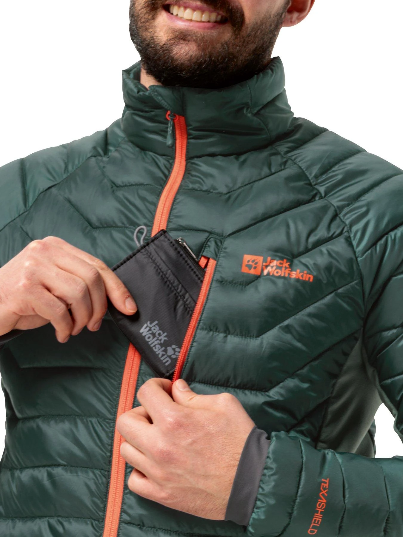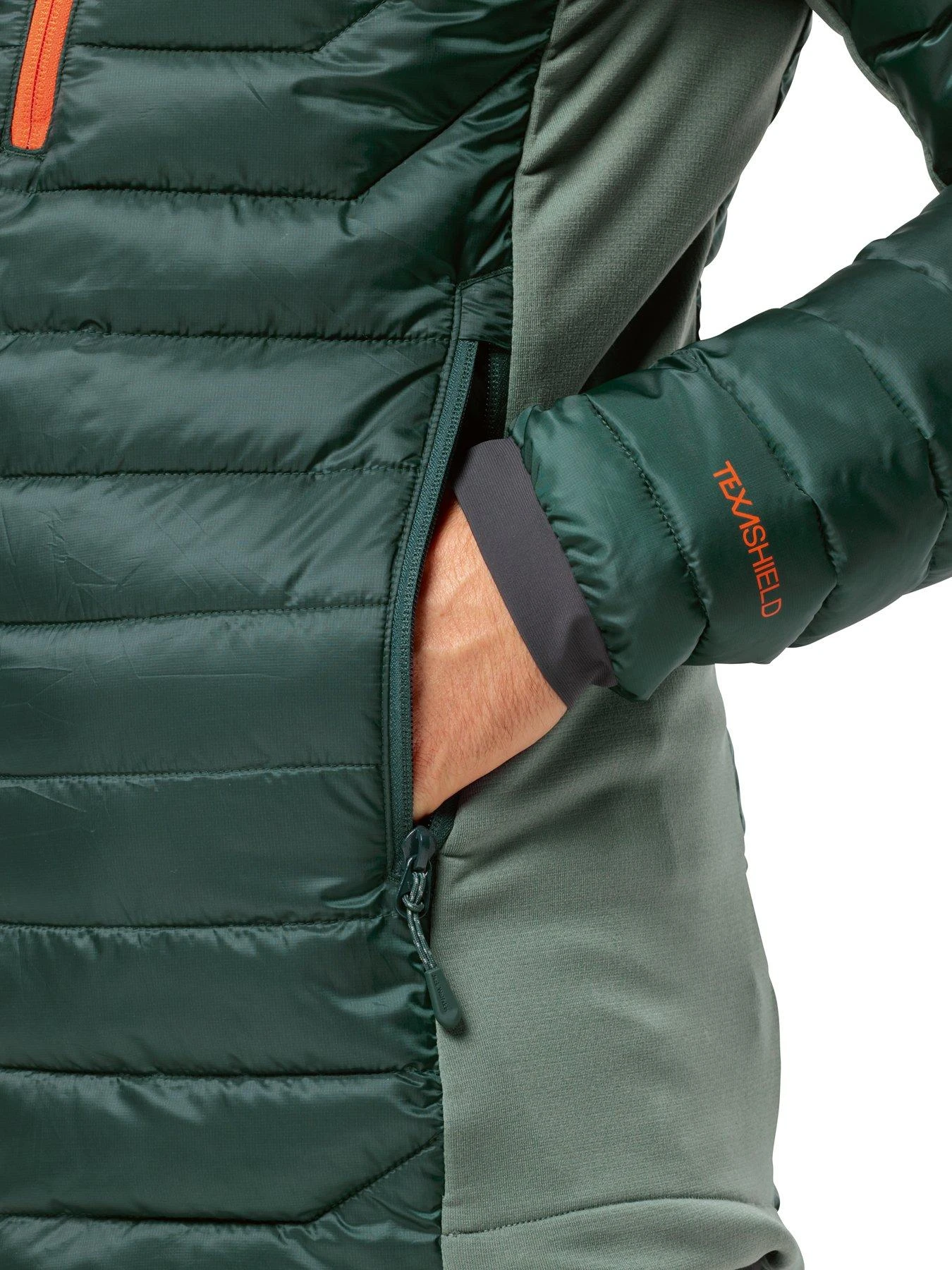 - Material Content: Main Fabric: TEXASHIELD PRO REUSED/RECYCLED RIPSTOP 20D; 100% Polyester (Recycled)Contrast 1: TEXADRI STRETCH FLEECE GRID; 93% Polyester, 7% ElastaneContrast 2: NYLON STRETCH JERSEY; 75% Polyamide, 25% ElastaneFilling 1: TEXATHERM PRO; 100% Polyester (Rec