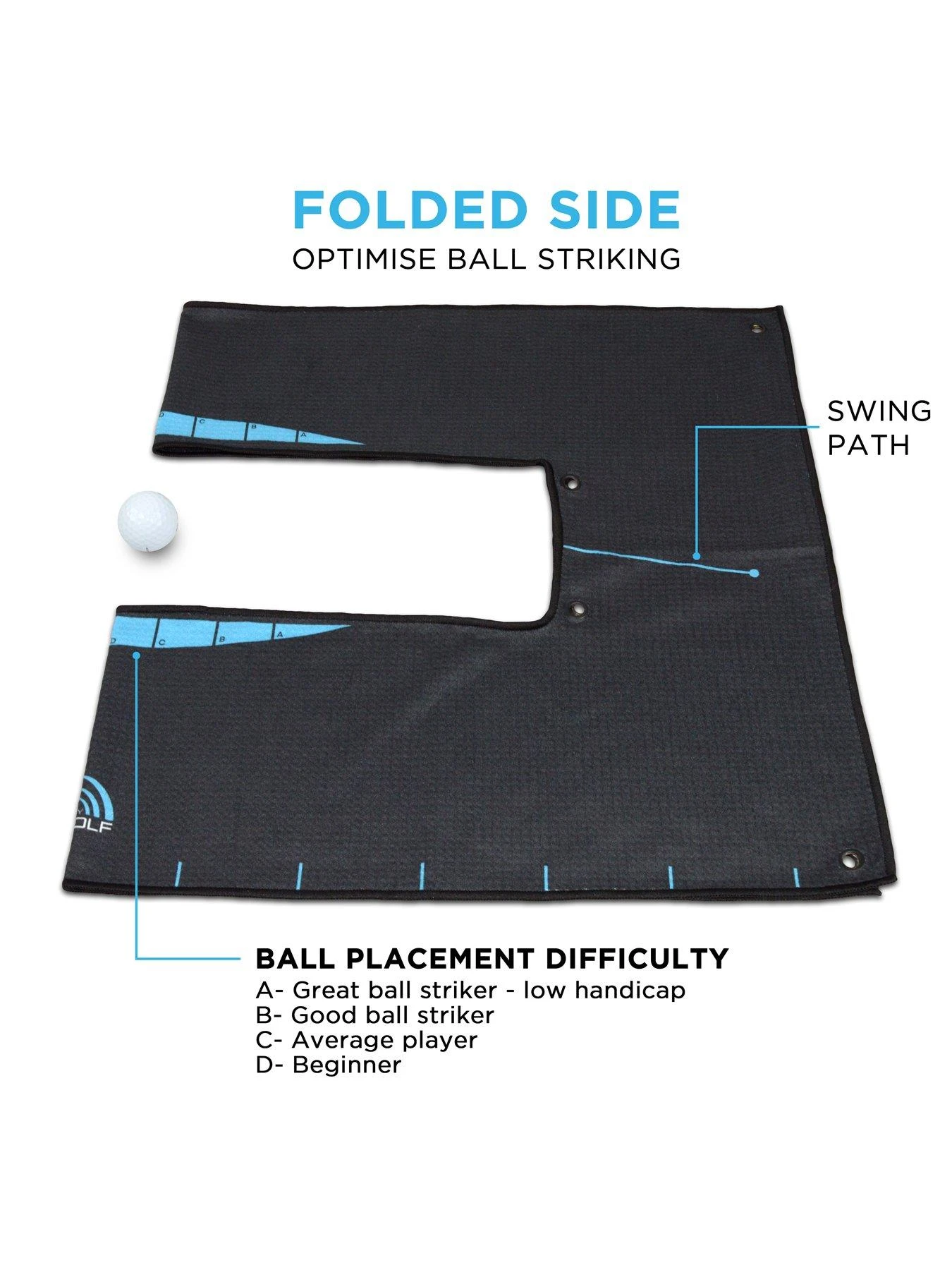 Learn How to Strike the Ball: This versatile towel can be used at the driving range or practise ground in order to dial in your pre-shot routine. Learn how to strike the ball, then the turf correctly for that perfect contact.
