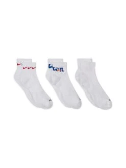 Nike Men’s Train Everyday Plus Cushioned Graphic 3 Pack Ankle Sock – WHITE/MULTI