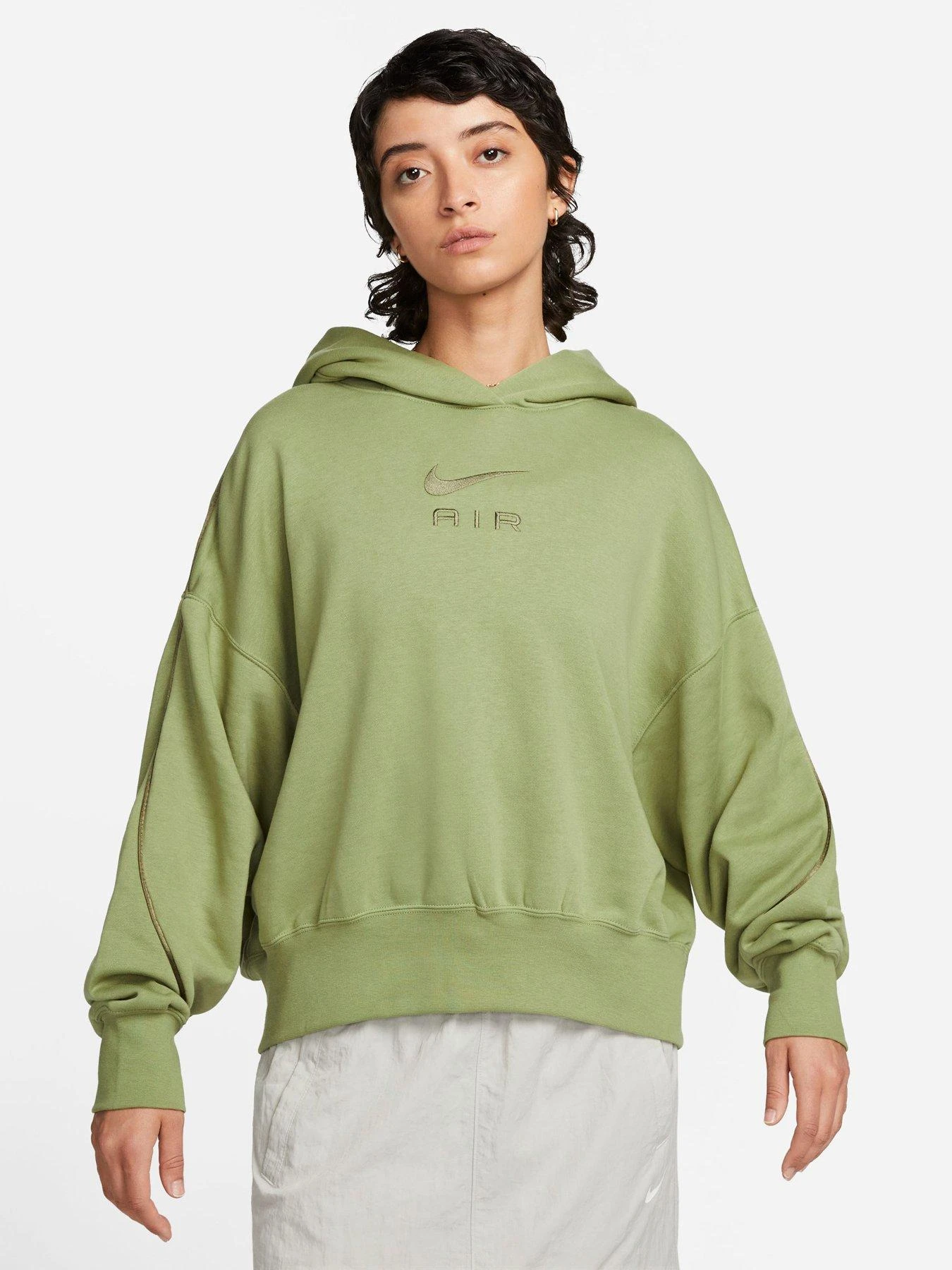 - Comfort, style and iconic design collide with this Nike fleece hoodie. The brushed lining is paired with a roomy silhouette for added snug appeal and endless layering potential, while Nike Air branding to the chest gives a timeless touch.