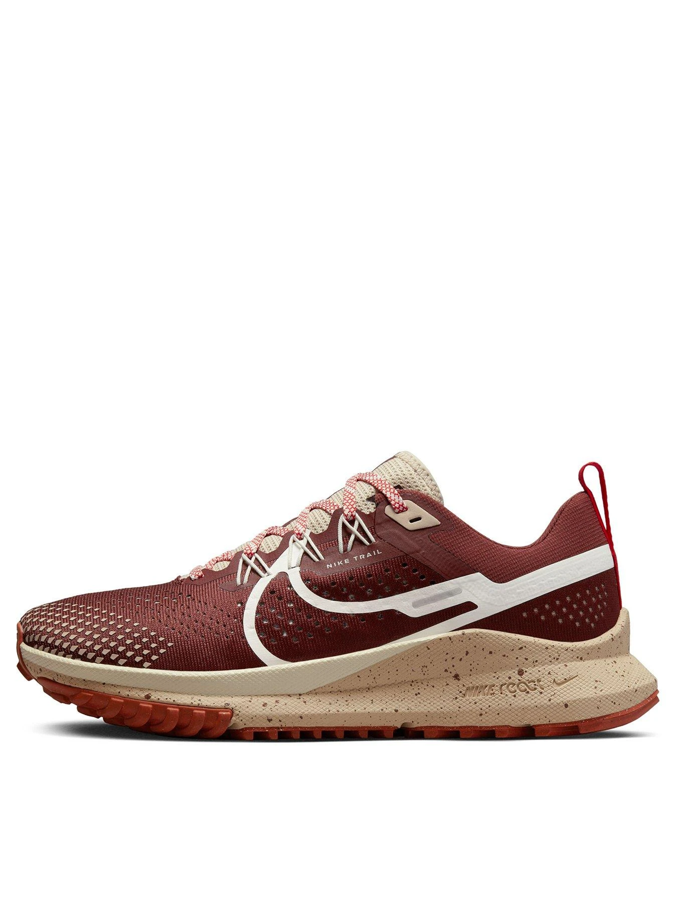 - The trail awaits. Go follow it in the Nike React Pegasus Trail 4. Springy and supportive, they’re decked with Nike React foam that responds to your every step, while flywire technology works with a midfoot band to keep your foot in place. The upper was designed with runner-informed data – meaning its got cooling mesh in all the right places, and extra skins across the toes for durability.