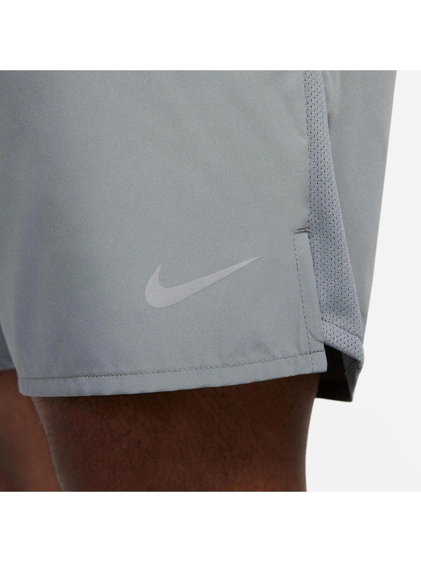 - Put yourself to the test with the Nike Challenger Shorts. Arriving in a versatile grey hue, they feature a loose outer layer with fitted inner shorts that give a supportive feel with relaxed comfort. Dri-FIT technology wicks sweat away as you run, so you can get in the zone with zero distractions.