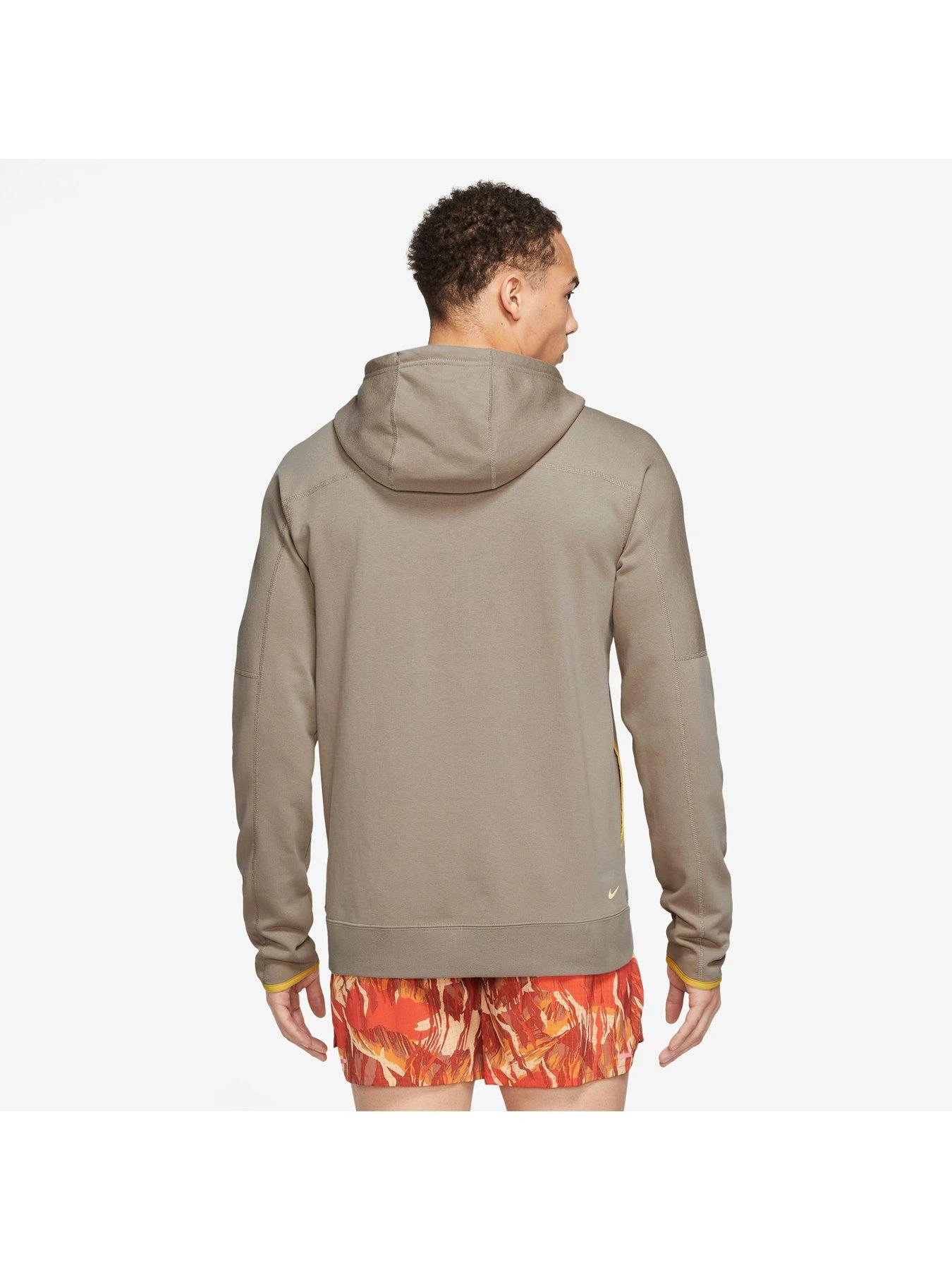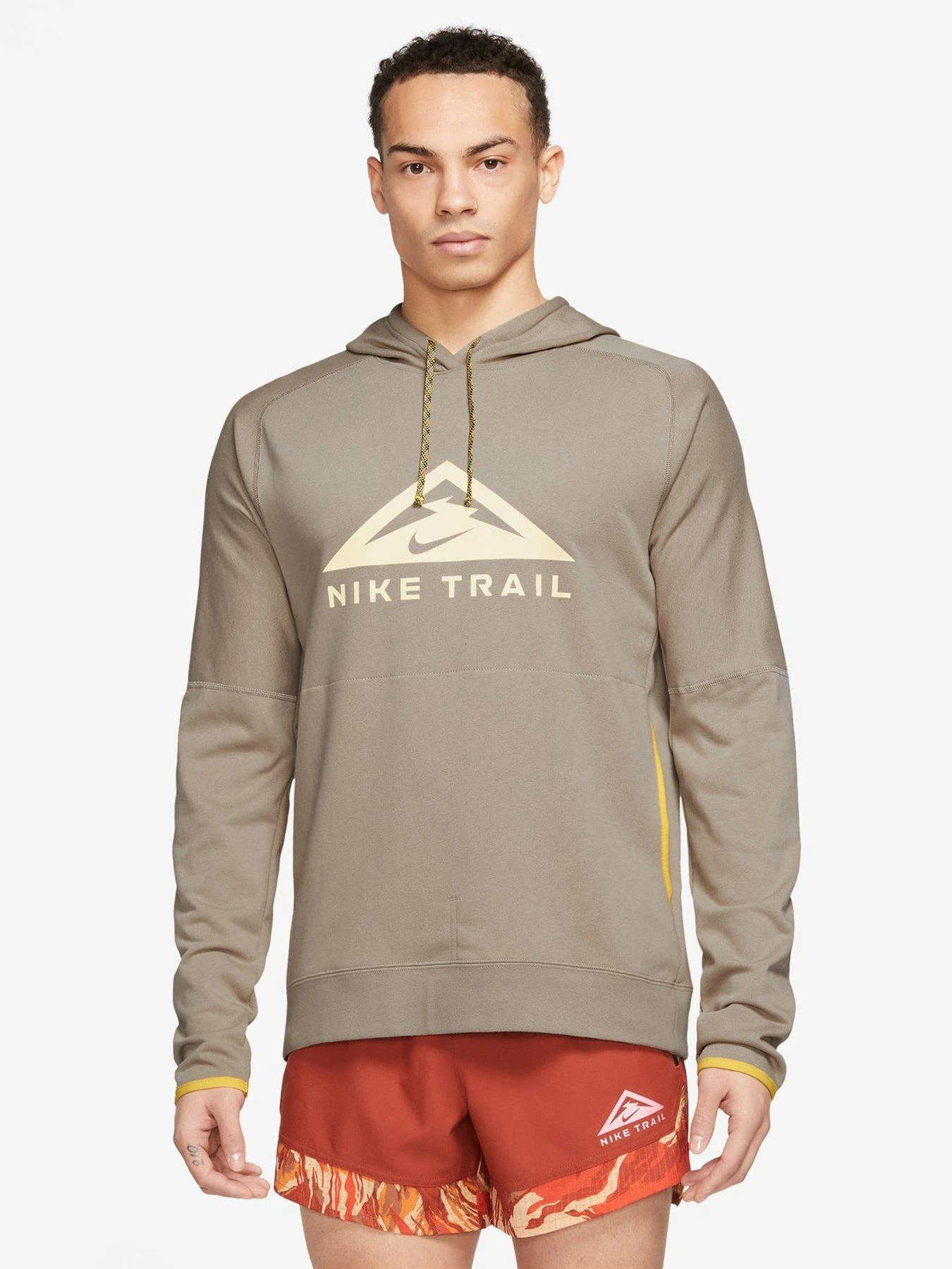 - Start and finish your outdoor adventure with this comfortable trail running hoodie from Nike. It’s made for those pre- or post-run moments where a little extra insulation is always welcome. It’s comfortable, lightweight feel keeps you feeling warm inside and out, like those waning moments of a beautiful sunset. Extra coverage courtesy of extendable sleeves keeps the chill out.
