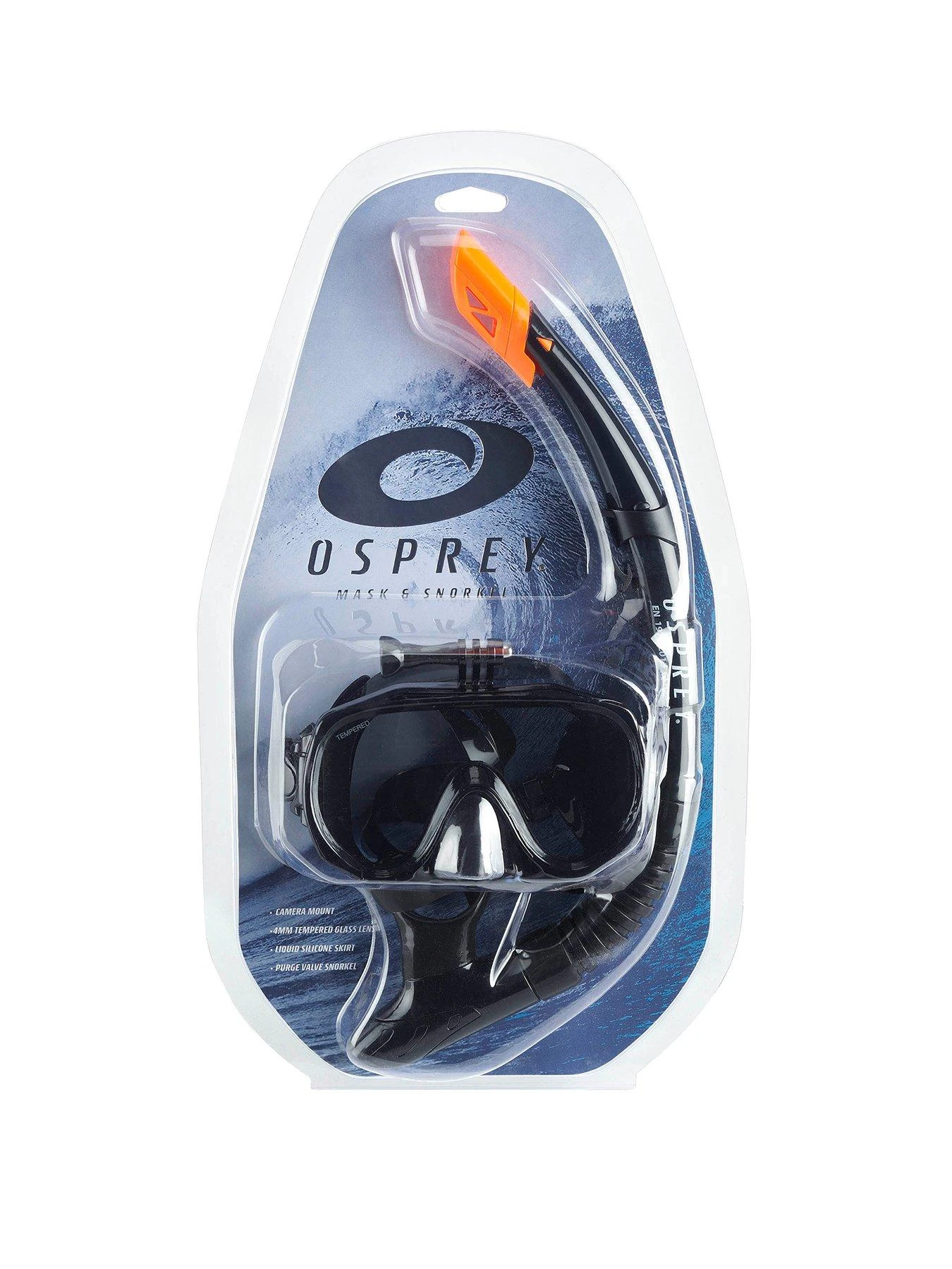 Osprey Adult Mask and Snorkel set with Camera Mount – Black
