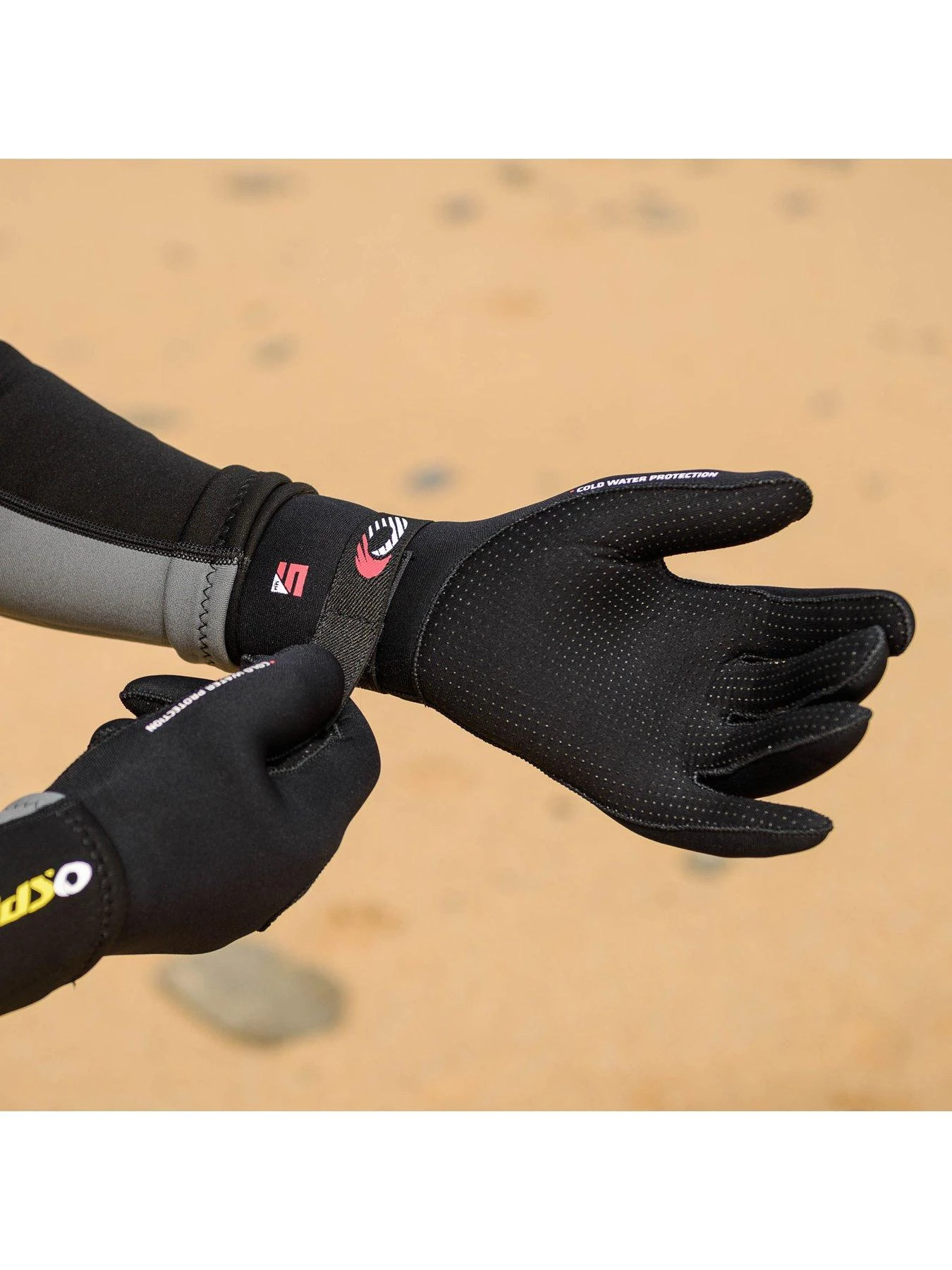 Featuring 5mm thick neoprene, the super-stretch material provides warmth without sacrificing dexterity, feel or manoeuvrability when you are in the water. Not only will these gloves keep your hands warm, they also provide great grip. The rubberised palm grip will prevent you from slipping and losing your grip at the most vital moments.
