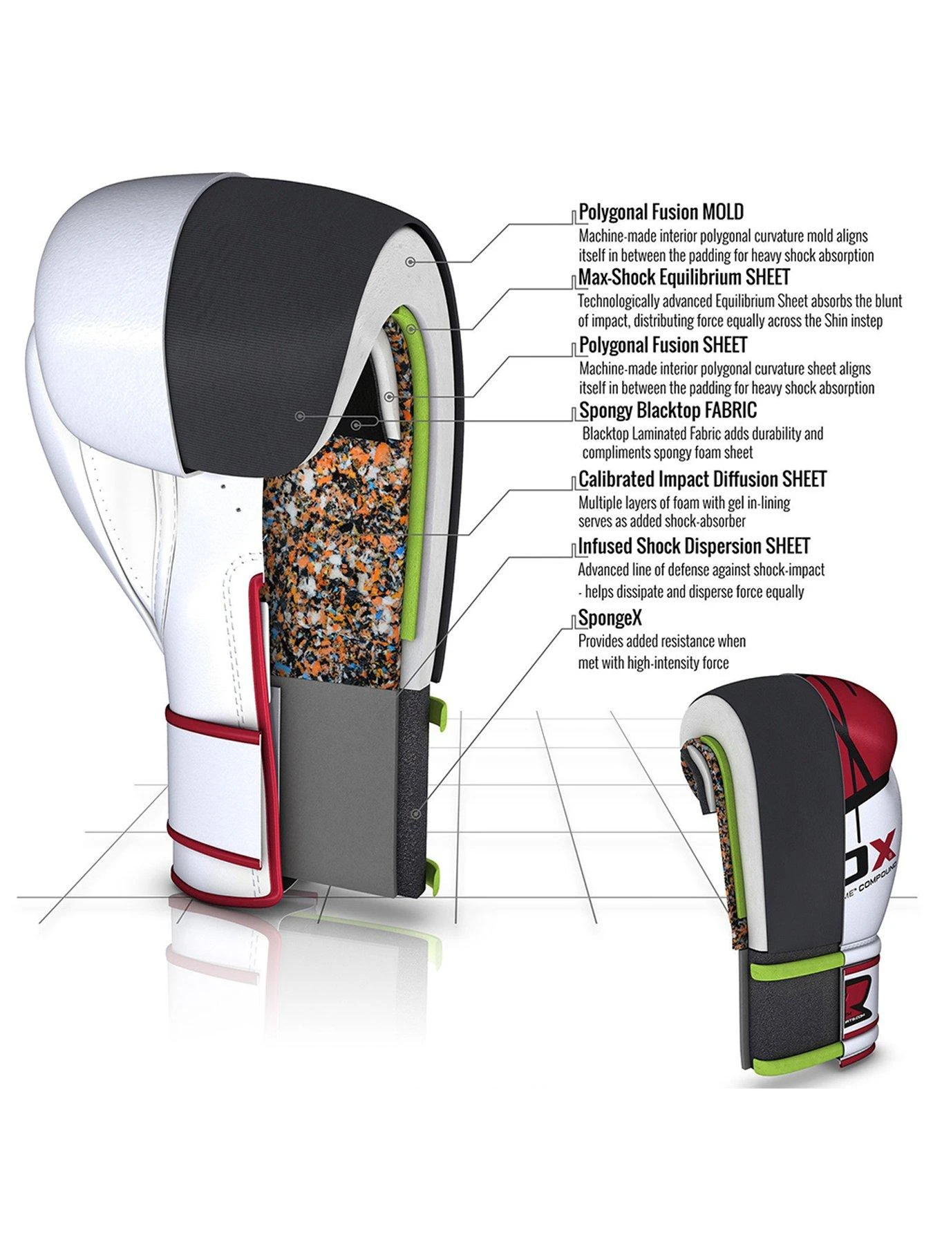 - Shell-Shock™ gel between each slab reduces force of impact through layers of shock-dissipating gel-lining