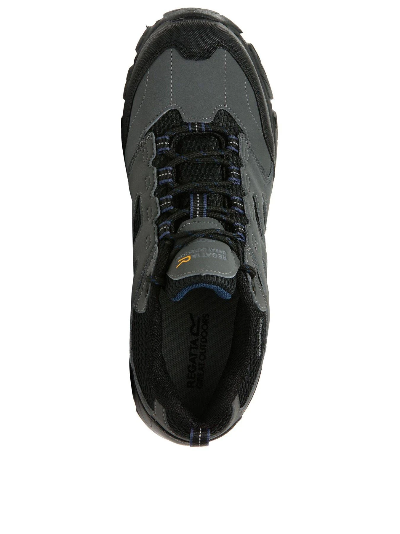 Get out and explore with the Holcombe walking shoes from Regatta. The men’s walking shoes are waterproof and breathable to keep feet dry and fresh. The walking shoes feature a rubberised toe and heel bumpers to protect against knocks and bumps, and a cushioned outsole for comfort. Whether exploring the coastline or taking an evening stroll with the dog, the men’s walkers are made to keep you active. With a sturdy rubber outsole for a reliable grip.