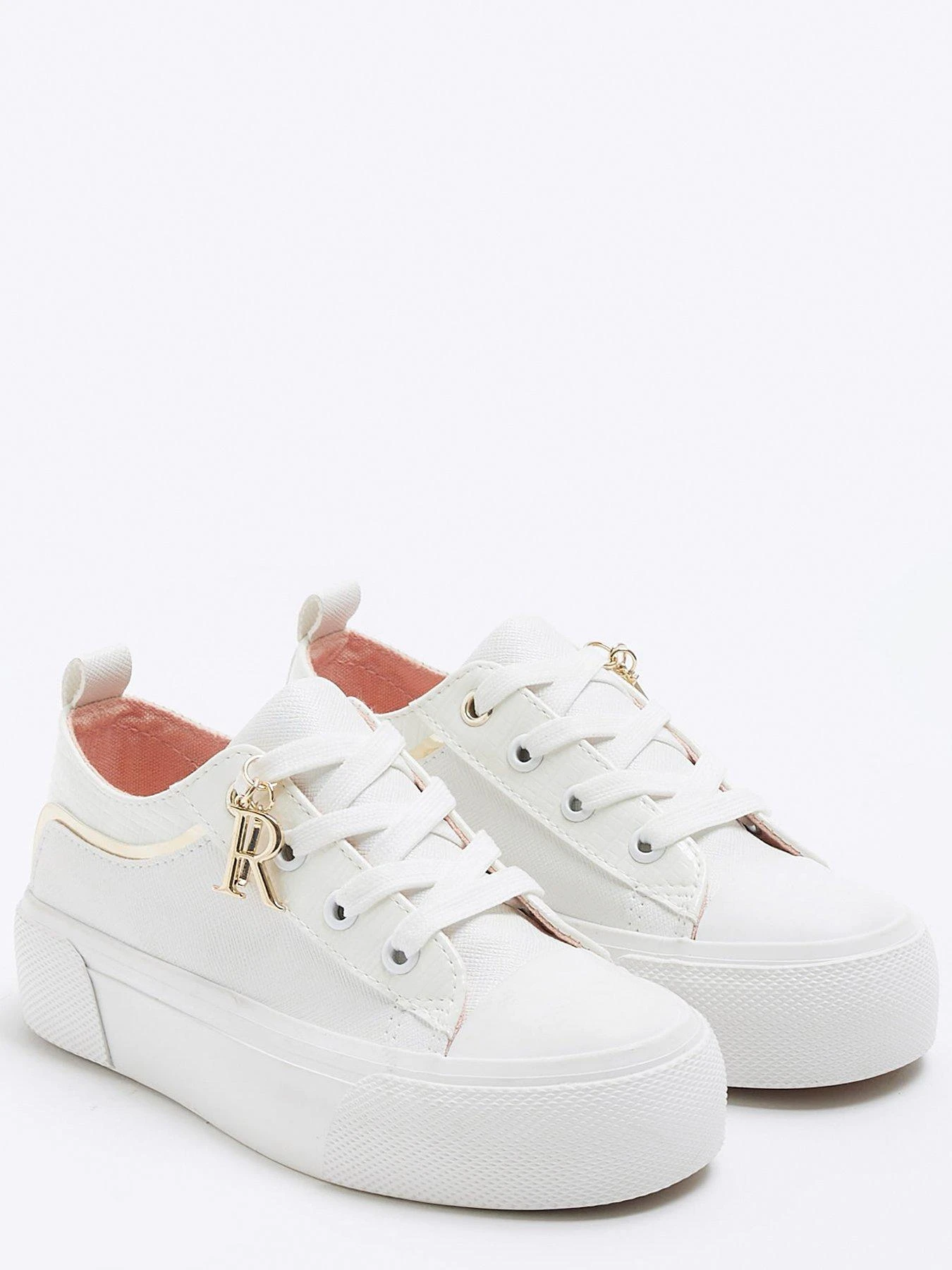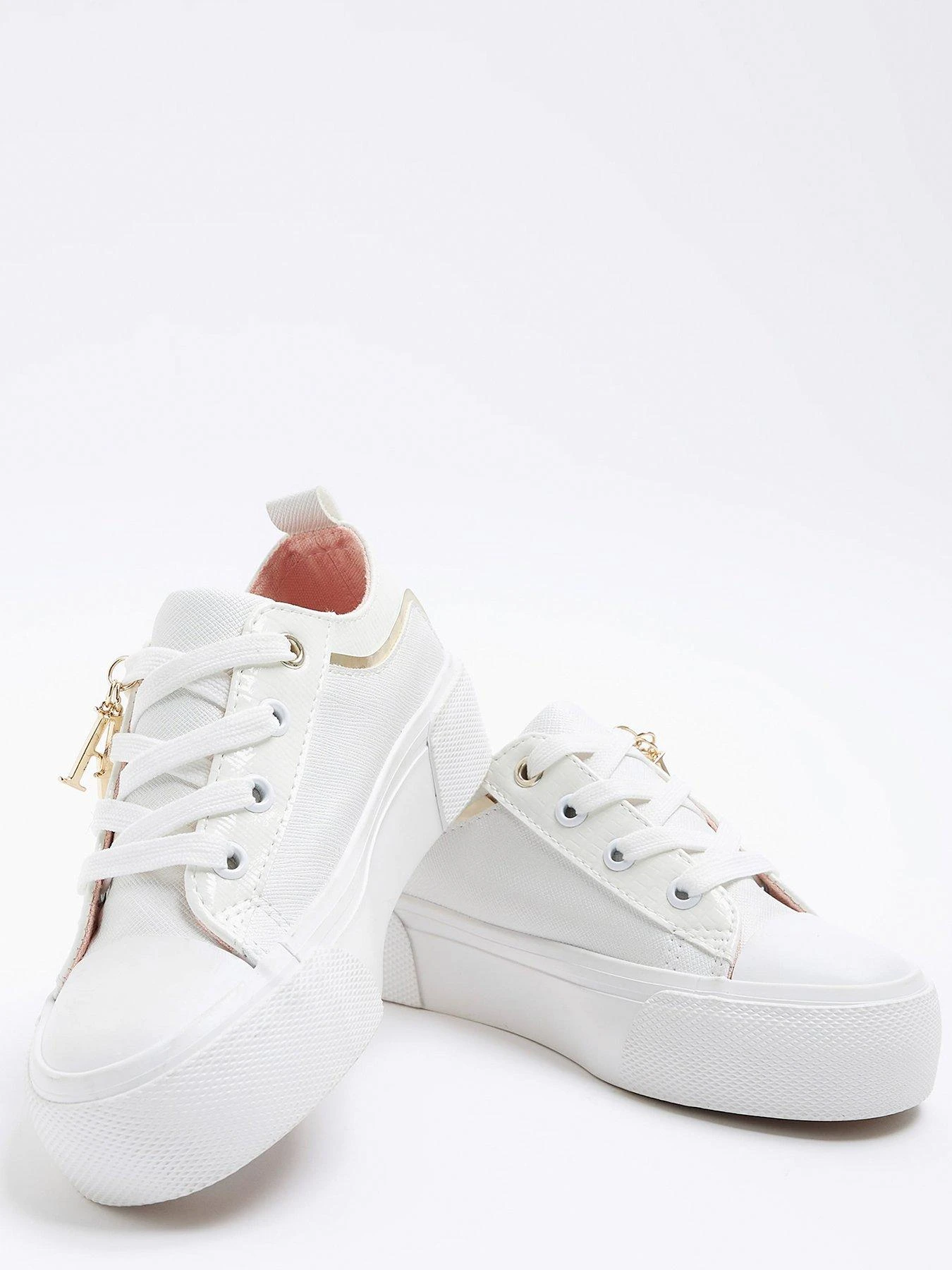 River Island Girls Lace Up Charm Detail Trainers – White