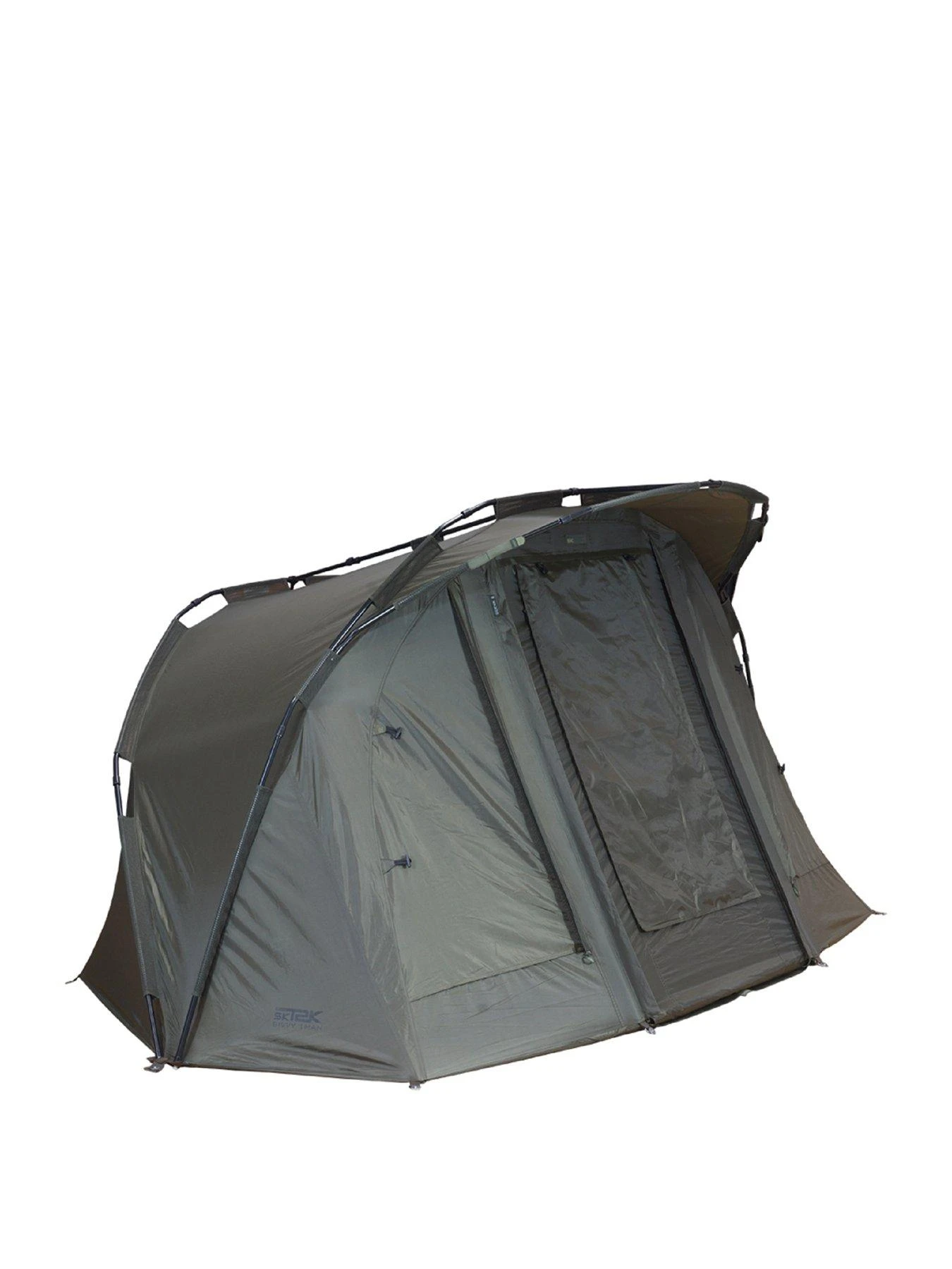 Intelligent, functional and durable, the SK-TEK range delivers on every level. From bivvies and shelters offering space, reliability and usability to sleeping and seating solutions that are practical, comfortable and lightweight. Each item in the range has been fully tested to work in all environments. With our unique custom camo material, the luggage collection is concise, modular and practical. The range works together seamlessly to provide a smart and affordable solution for the most demanding angler. SPECIFICATION – Bivvy 1 MAN. H5,000mm HH 210 PU Backed Polyester. Lightweight 5-section 16mm 6061 aluminium poles. Large peak for doorway protection. Tuff-lite™ Removable Groundsheet. Maximum space pole layout and inline tension bars. 2-way letterbox style removable door. 3 Door window options (green, clear PVC, mozzi mesh). Large front and rear mozzi mesh vents. Velcro rod retainers and roll back open front option. Supplied with oversize carry bag and heavy-duty T-Pegs. DIMENSIONS – Assembled 2.7W 2.05D 1.40H. Weight 6.1kg