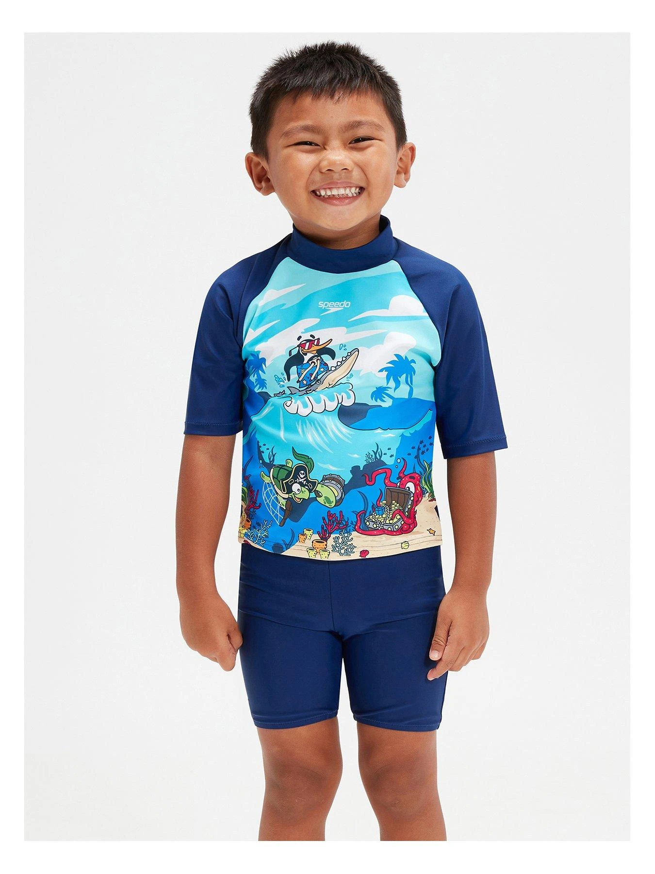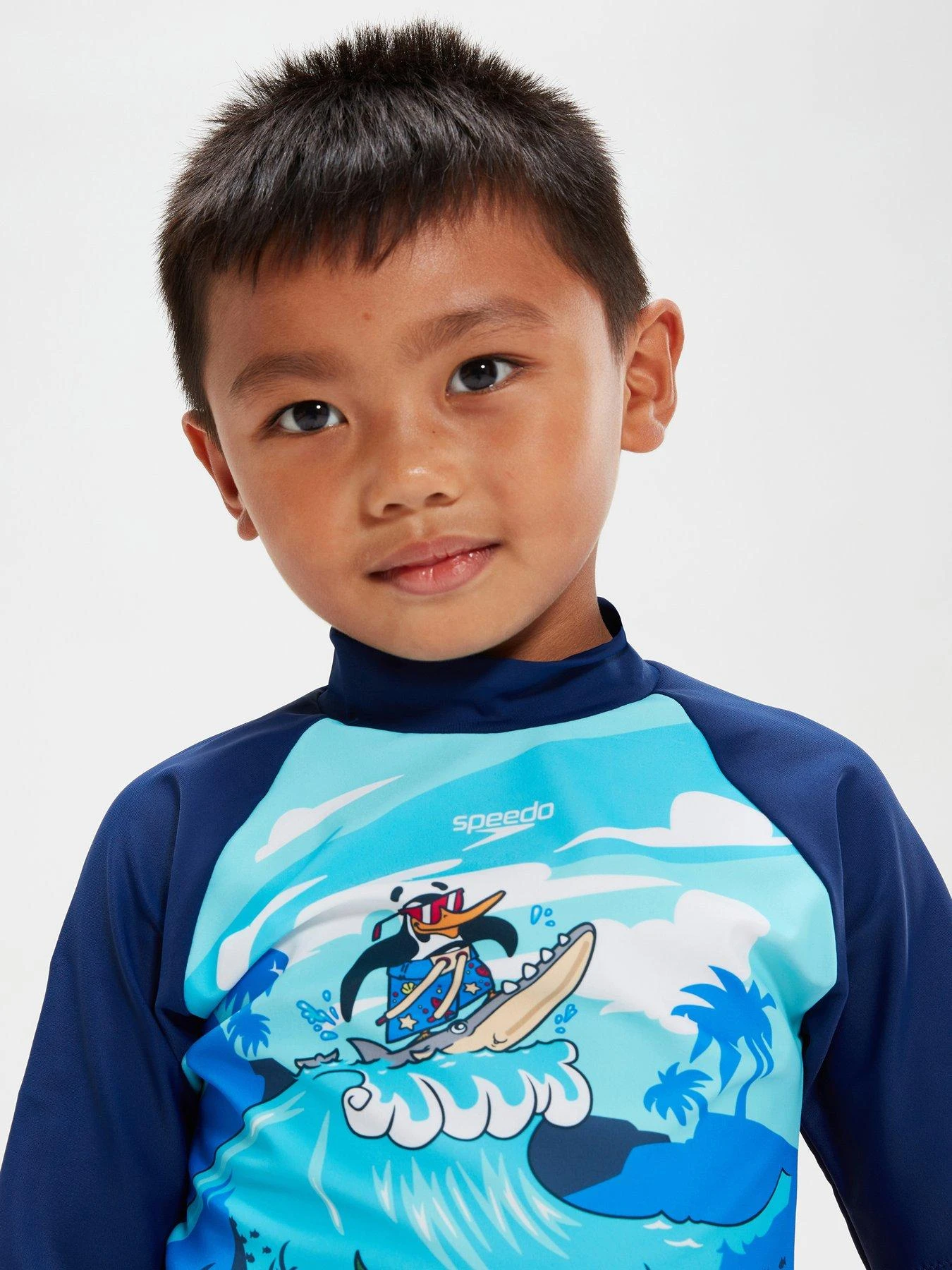 - Surf scene complete with Speedo’s new Chima the Penguin and Darwin the Turtle characters, it’s ideal for protecting your little one’s delicate skin on holiday