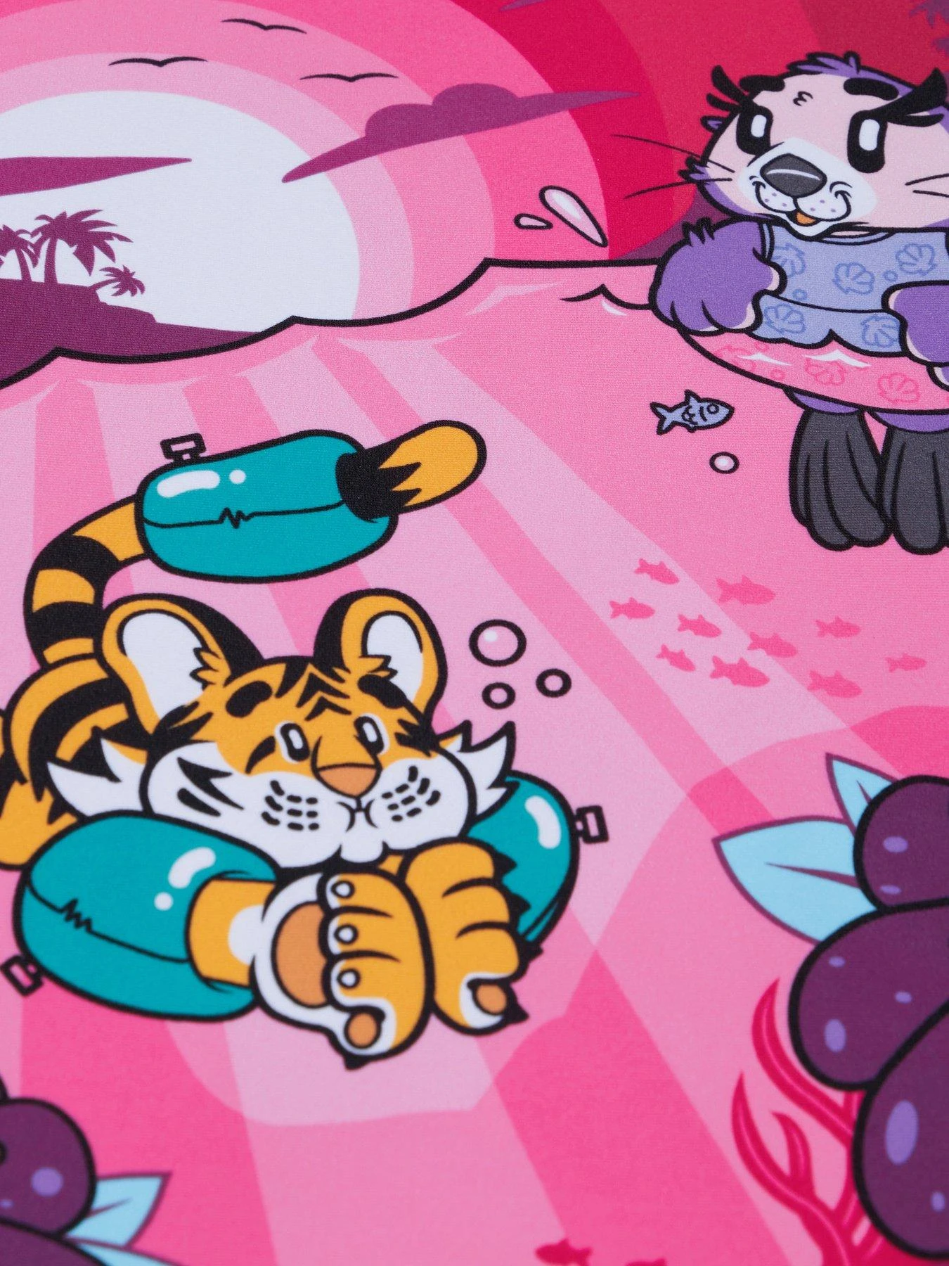 Join the all-new Learn to Swim Squad on a Bondi Beach adventure! Perfect for beach days and splashing around, this colourful Sun Protection Top and Shorts Set is a great choice for water explorers. Featuring a twilight ocean scene complete with our new Aria the Otter and Ellie the Elephant characters, it’s ideal for protecting your little one’s delicate skin on holiday. Soft and stretchy, the set features a rash top with UPF 40+ rating and knee-length shorts. Ideal for the pool and beach, our exclusive fabric provides higher chlorine resistance than standard swimwear fabrics and includes CREORA?????? HighClo, so it fits like new for longer. If you’re looking for great eco-credentials, it’s got those, too: our Eco EnduraFlex fabric is made from 100% recycled pre-consumer waste, such as recycled fabric waste from factories.