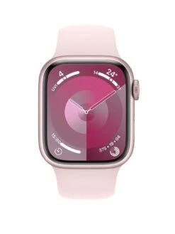 Apple Watch SeriesĀ 9 (GPS + Cellular), 41mm Pink Aluminium Case With Light Pink Sport Band – S/M
