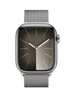 Apple Watch SeriesĀ 9 (GPS + Cellular), 41mm Silver Stainless Steel Case With Silver Milanese Loop