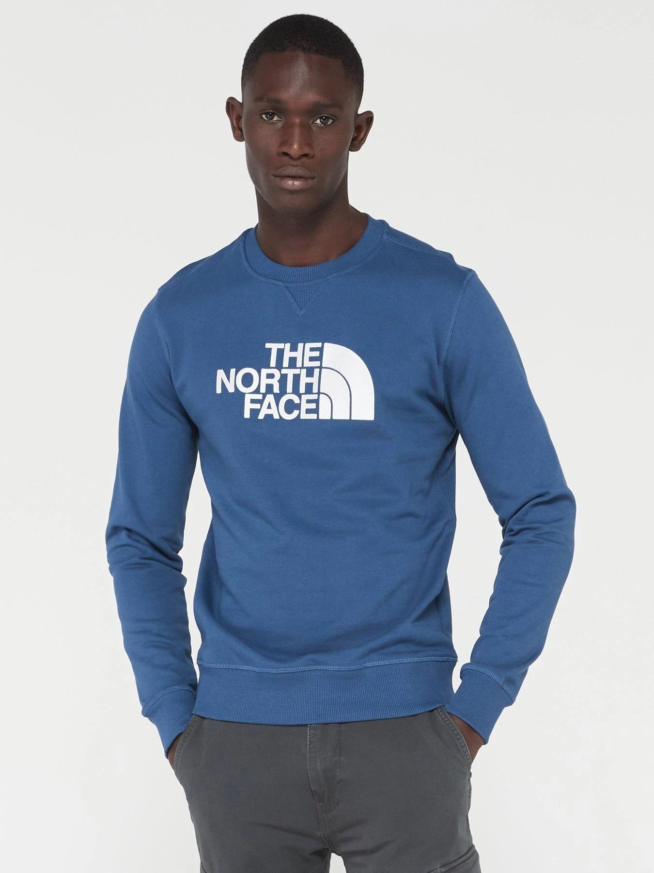 - The North Face radiates casual style and comfort with this Drew Peak long sleeve sweat sweatshirt. A sleek addition to your wardrobe in blue, it features the North Face Domes in the classic positions.