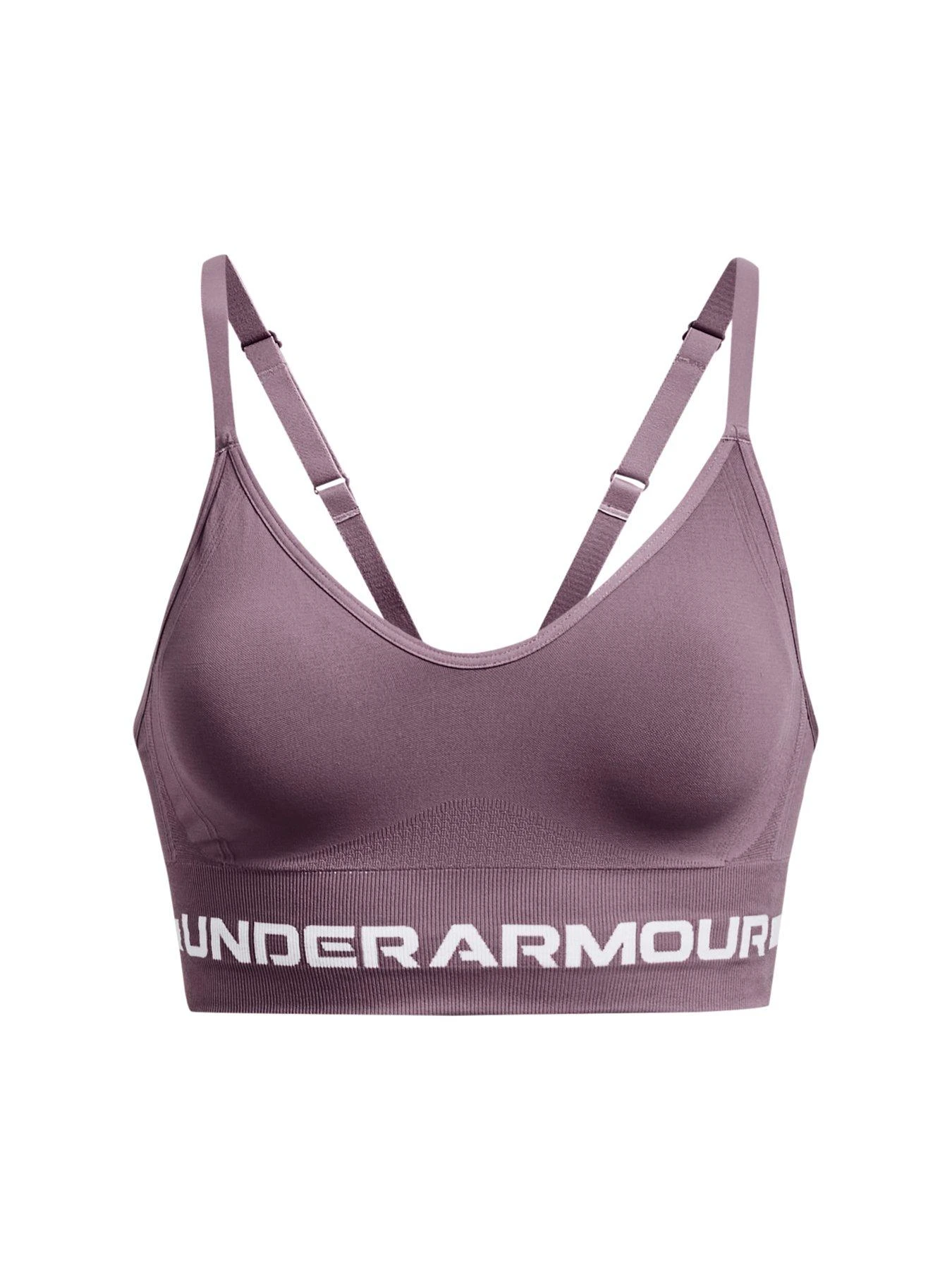 - Stay supported as you flow in yoga, feel the burn in Pilates or hike in the mountainside – you can do it all with this Under Armour bra. Knitted with specialist UA Seamless fabric, its almost no-sew construction brings complete comfort to every workout to keep you focused on your form. The deep V-neck pairs perfectly with most gym tops, while the longline hem gives you the option to wear it alone without feeling too exposed.