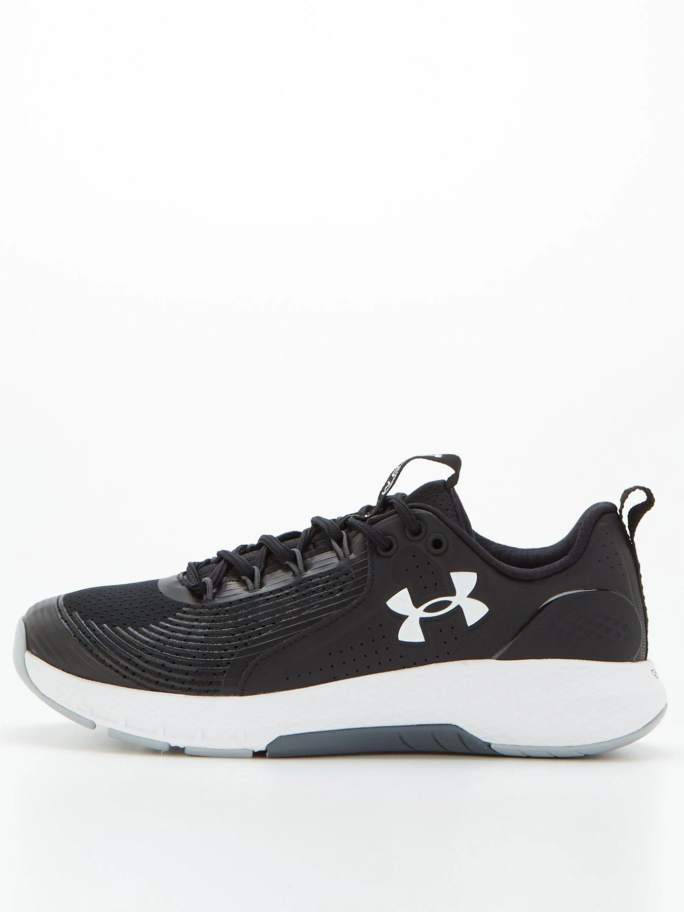 - Lace up and focus on the session with the Charged Commit TR 3 by Under Armour. Built with a lightweight mesh upper for breathability, they feature a leather saddle to the top of the foot that stands up to wear during ‘laces to floor’ exercises. The flex grooves allow you to bend the foot naturally, whilst the Charged Cushioning® midsole absorbs impact for a smooth, responsive ride. Under Armour branding gives that seal of approval.